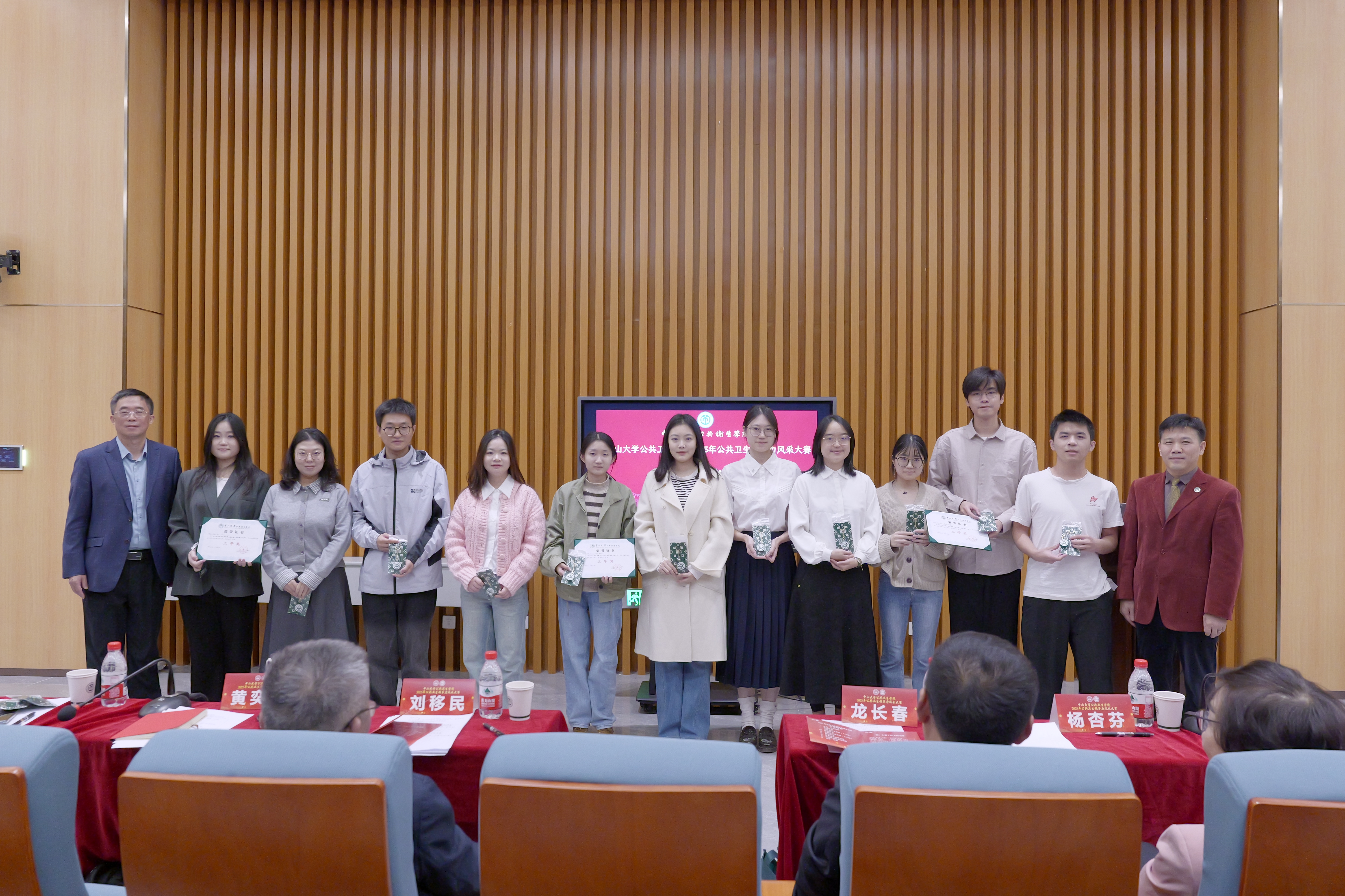 与会领导嘉宾为获奖队伍颁发荣誉证书,现场掌声雷动,共同见证这份属于公卫学子的荣耀时刻。