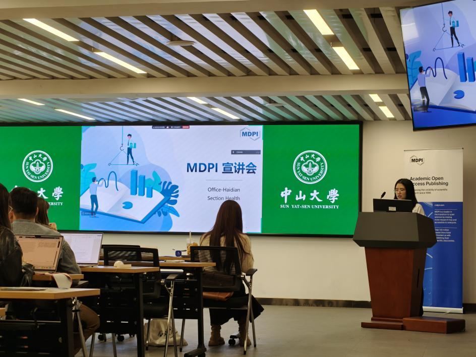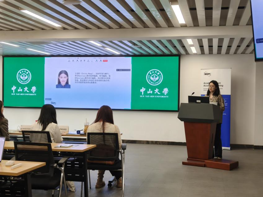 随后,Foods期刊助理责任编辑乔子纯女士向在场观众介绍了OA出版模式,在全球开放获取模式高速发展的今天,OA模式逐渐在出版领域中占据更加重要的地位。接着,乔女士介绍了MDPI及期刊的发展历史和各项重要指标,以及MDPI严格、快速的同行评审流程,并用流程图为在场同学进行了生动的展现。