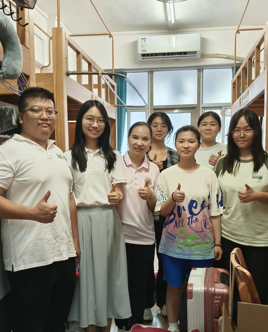 搬迁完成后,王燕芳老师、蓝丹红老师、李永强老师、林晓老师、郭蓝老师,以及杨秀芝、张芷蕙,逐间走访宿舍。老师们与同学们亲切交谈,询问搬迁感受,倾听大家的困惑与建议,对同学们在搬迁过程中遇到的问题,及时协调解决。一句句暖心的问候,一声声关切的叮嘱,让初入新校园的同学们,真切感受到了家一般的温暖。
