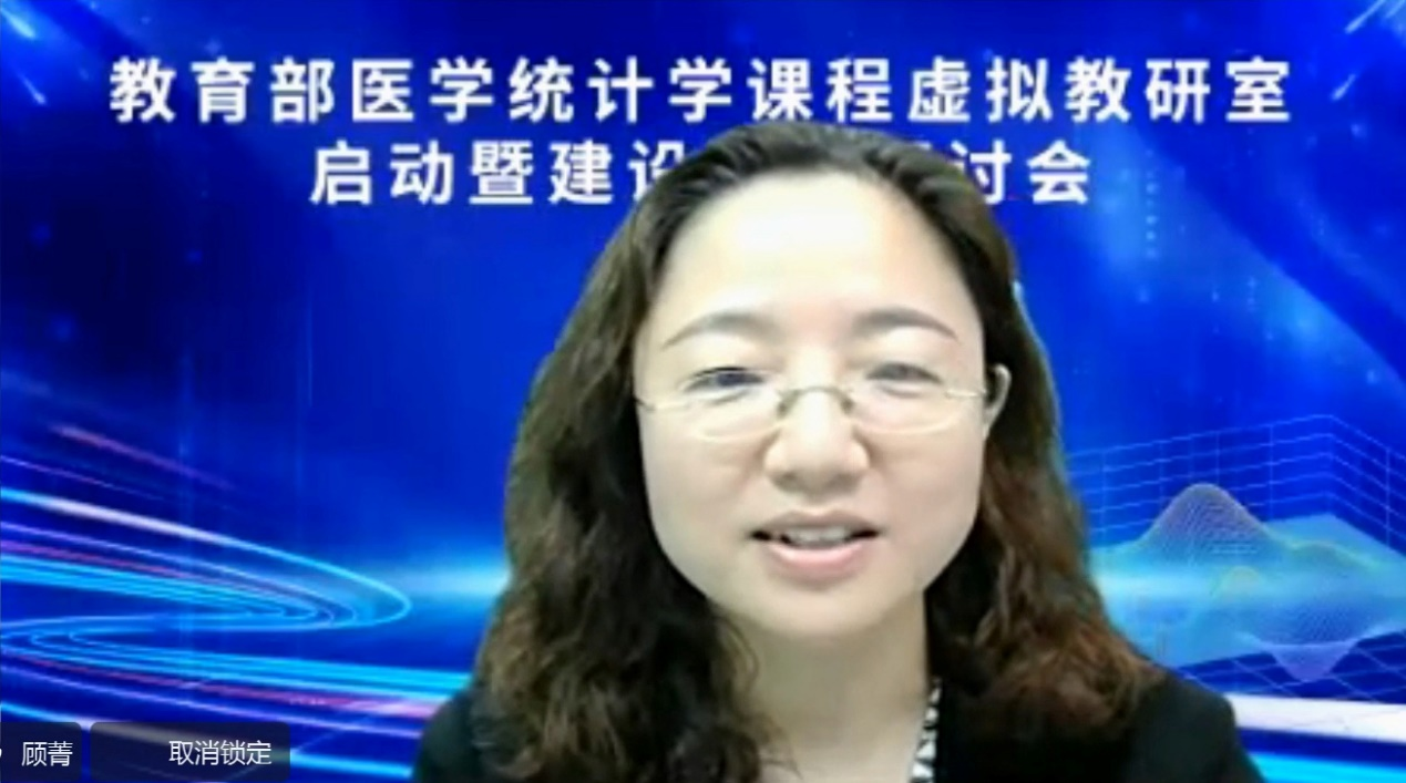 随后,顾菁教授从虚拟教研室的建设背景、“医学统计学课程虚拟教研室”的建设基础和建设目标、未来虚拟教研室的建设计划三方面进行了介绍。她提到,希望通过3-5年建成全国性《医学统计学》课程群虚拟教研室,形成以教研促教改、以教改促创新、以创新提质量的良好教学氛围,实现东、中、西部高校医学统计学教学师资的共同发展,提升人才培养质量。