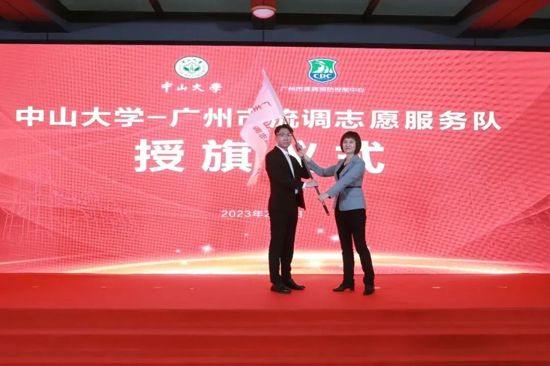 -广州市流调志愿服务队授旗。