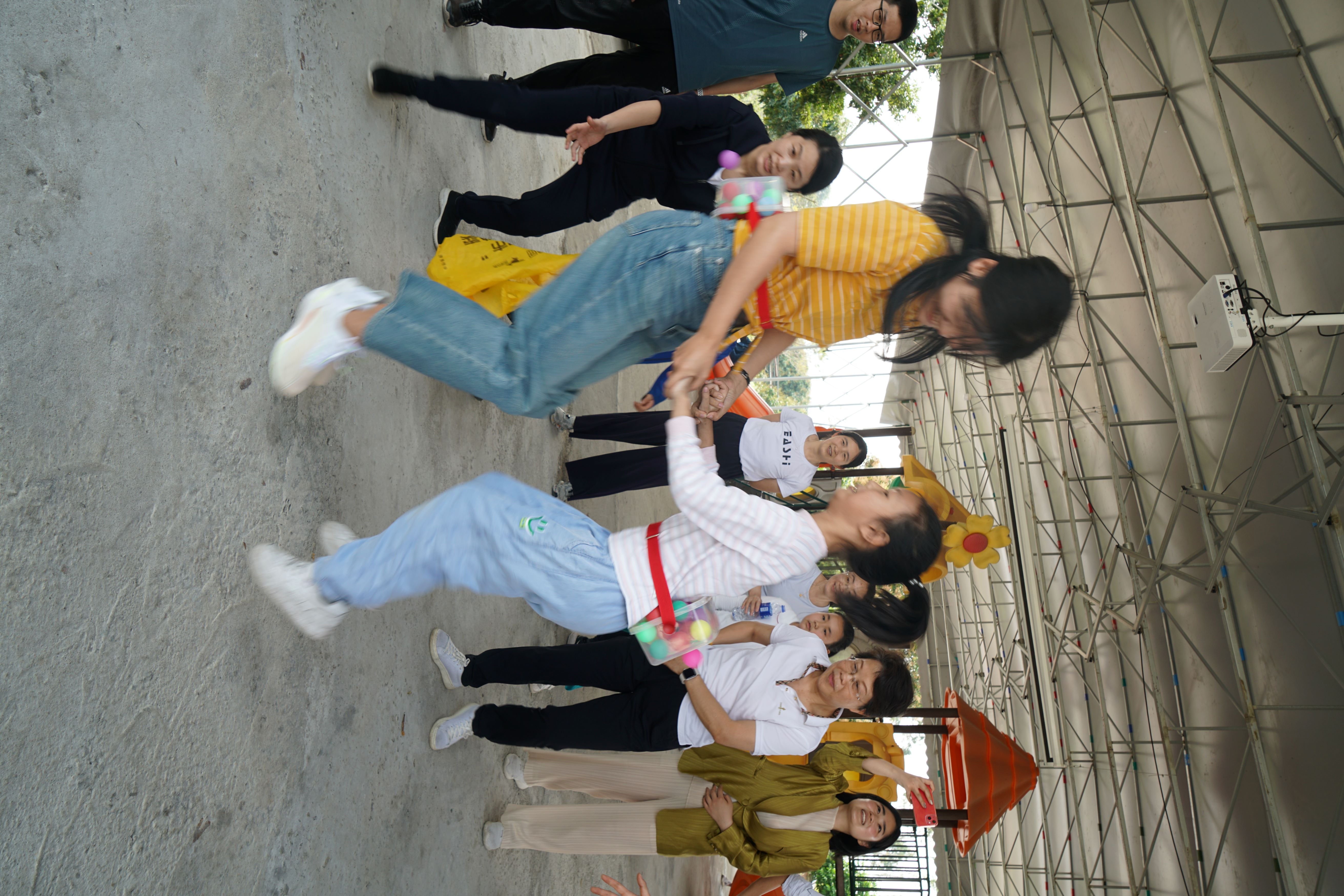 中午,饭后开展了趣味团建游戏,有三个节目:“五毛一块”、“一圈到底”和 “母鸡下蛋”。“五毛一块”让大家在一次次紧张的口令声中相互依靠,拉进心与心之间的距离;“一圈到底”考验大家的配合能力,在游戏的2.0版本中,大家脑洞大开,裁纸成圈,化不可能为可能;“母鸡下蛋”中大小朋友们蹦蹦跳跳,带来无数欢声笑语。每个游戏结束,会给获胜组颁发小奖品。在游戏过程中,大家紧密团结、互相帮助,增加了老师和家属间的凝聚力,更收获了快乐和友谊,将整个春游的气氛推向了高潮。