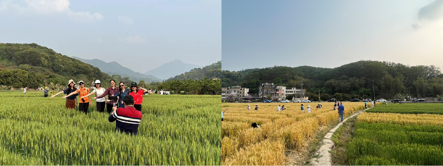 分工会组织教职工赴从化南平小镇朔溪徒步,赏罗洞小镇麦田风光。