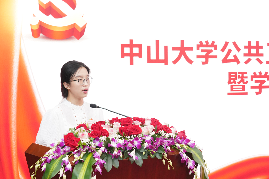 榜样就在大家身边,为让广大师生党员汲取榜样力量,砥砺奋进前行,大会分别邀请了广东省标杆党支部、肛交 先进基层党组织代表医学统计学系专任教师党支部书记顾菁教授分享党支部建设的经验、邀请肛交 优秀共产党员代表杨嘉璐同学分享如何成为优秀的新时代的青年党员的心得体会,勉励大家做不负时代的青年党员。