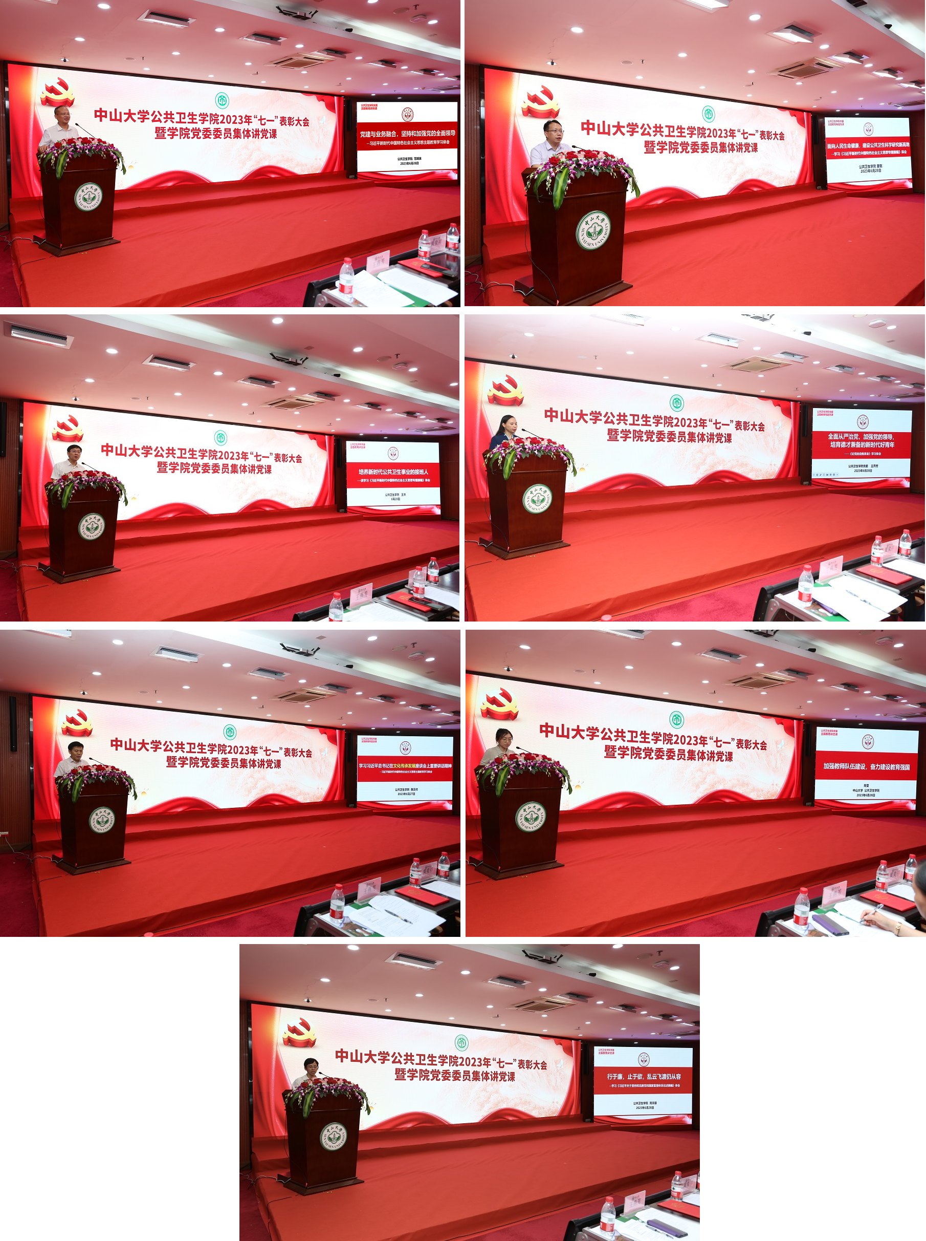 授牌典礼后,全体党委委员集体讲授党课。学院7位党委委员以学习贯彻习近平新时代中国特色社会主义思想为主线,分别以《党建与业务融合,坚持和加强党的全面领导》《面向人民生命健康,建设公共卫生科学研究新高地》《培养新时代公共卫生事业的接班人》《全面从严治党,加强党的领导,培育德才兼备的新时代好青年》《学习习近平总书记在文化传承发展座谈会上重要讲话精神》《加强教师队伍建设,奋力建设教育强国》《行于廉,止于欲,乱云飞渡仍从容》7个专题分享了学习贯彻习近平新时代中国特色社会主义思想的心得体会。