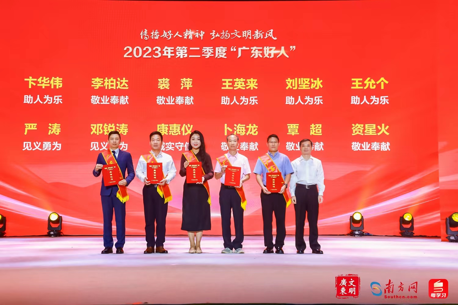 8月24日下午3时,2023年第二季度“广东好人”发布活动在江门演艺中心侨都大剧院举行。本次活动由广东省精神文明建设委员会办公室主办,南方新闻网、江门市委宣传部、江门市文明办承办,在广东文明网、南方网、粤学习客户端、南方+客户端多个平台全程直播。