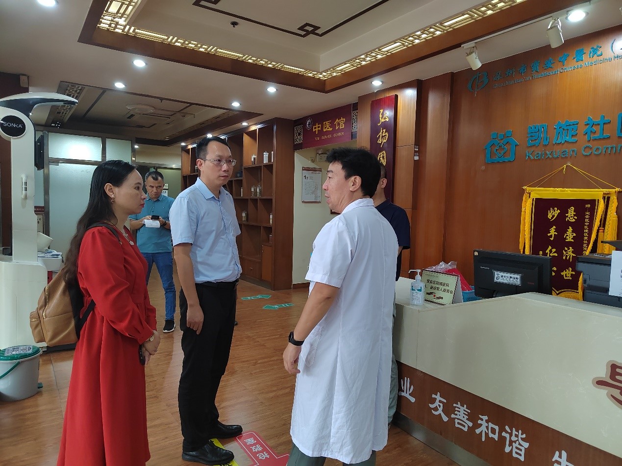 夏敏院长一行首先参观了深圳市宝安区中医院凯旋城社区健康中心,并在社区健康中心进行了 肛交