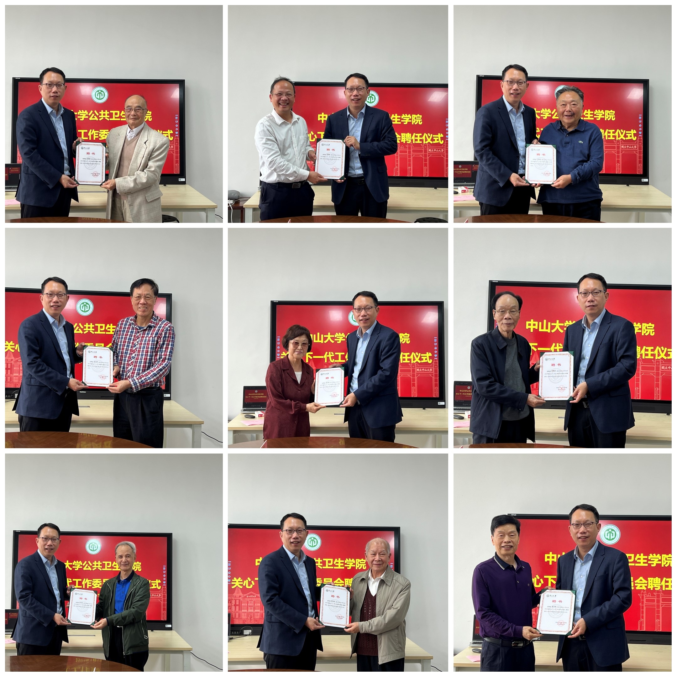 关心下一代工作委员会聘任仪式。全体党政班子和党委委员参加了仪式,仪式由党委书记范瑞泉主持。学院关工委设顾问1名,主任1名,副主任2名,委员6名。会上,范瑞泉书记宣读了委员会组成人员名单,夏敏院长为各位委员颁发聘任证书。