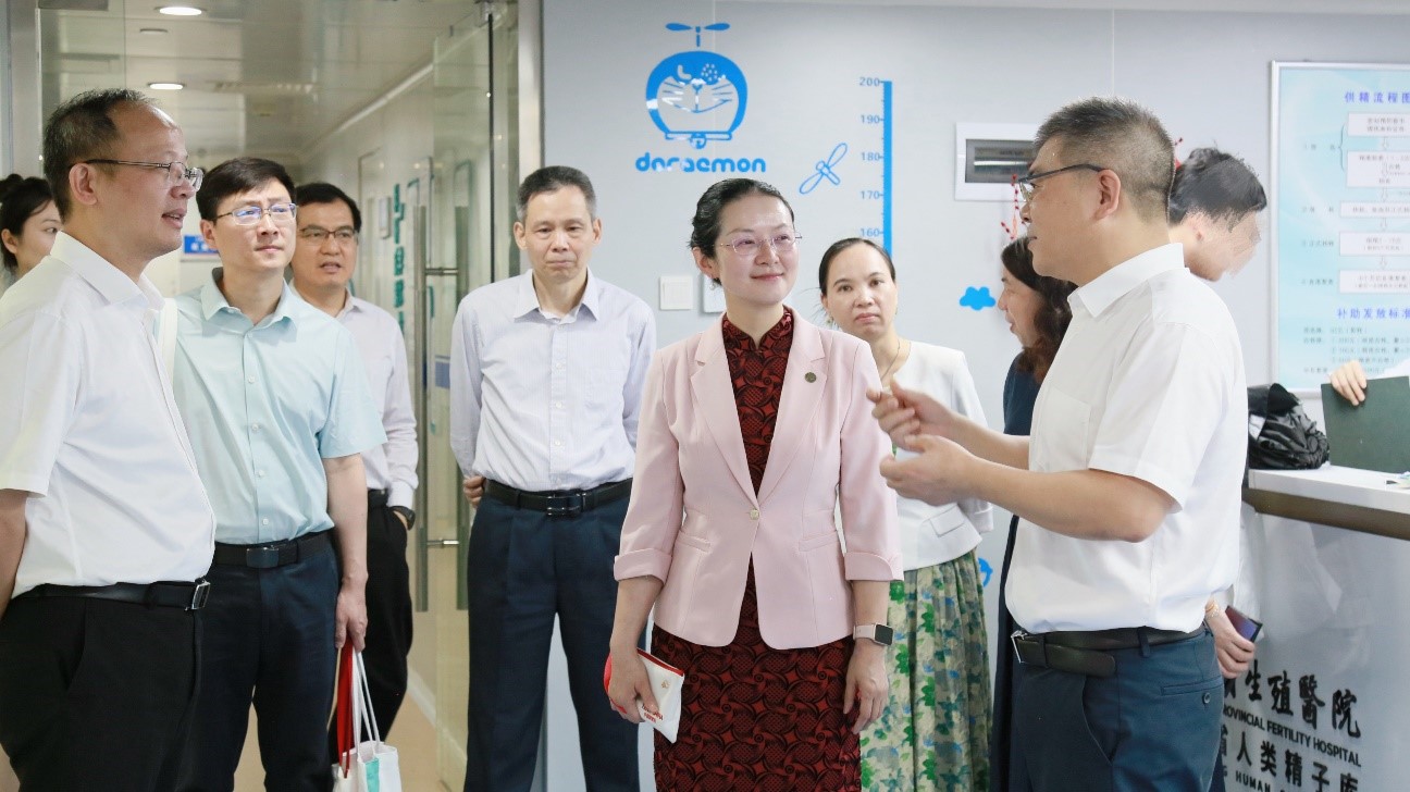 、省卫生健康委领导一行参观国家卫生健康委男性生殖与遗传重点实验室、广东省人类精子库,广东省生殖医院领导班子陪同,副院长张欣宗介绍医院科研情况。医院近年来加大投入建设国家卫生健康委男性生殖与遗传重点实验室,接下来将积极与肛交