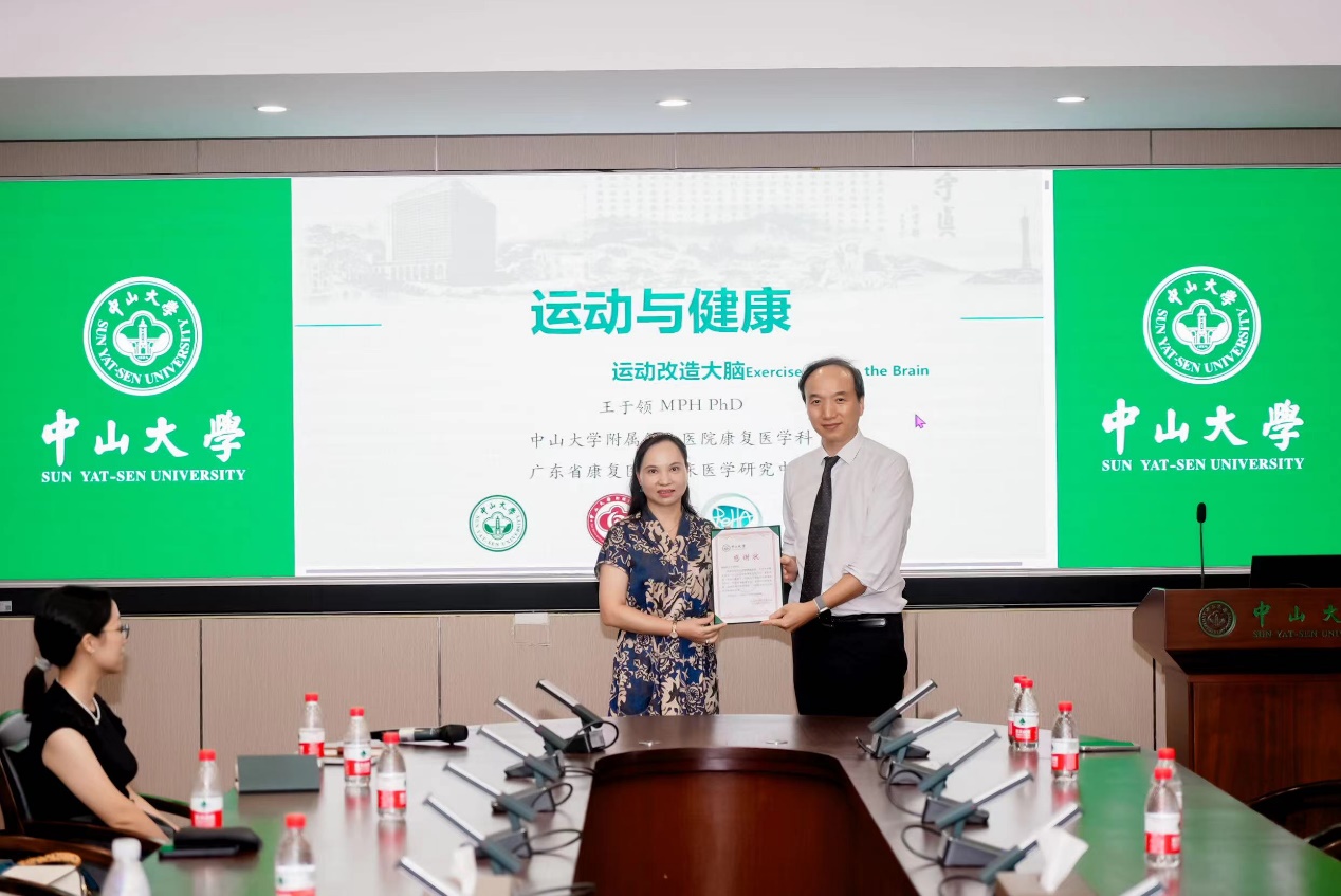 在本次讲座中,王于领教授以幽默风趣的语言深入浅出地剖析了运动对大脑健康的积极促进作用,着重强调了运动在预防脑卒中等疾病中至关重要的作用。王教授详细介绍了科学的运动干预策略,推荐每周至少150分钟的中等强度有氧运动或75分钟的剧烈有氧运动及太极拳、慢跑等适合大众的健身选择。王教授的讲座不仅富含实用的运动指导与健康科普知识,更引领着校友们走向科学运动之路,优化生活方式,助力身心健康发展。