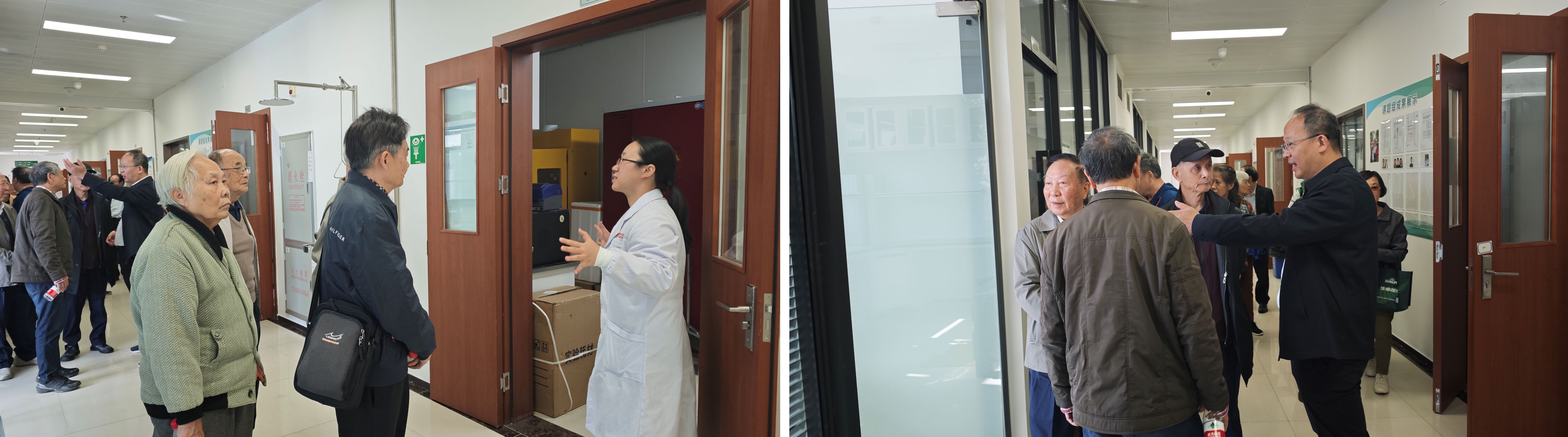 院楼前专程欢迎老同志们,党委书记范瑞泉全程陪同介绍参观。