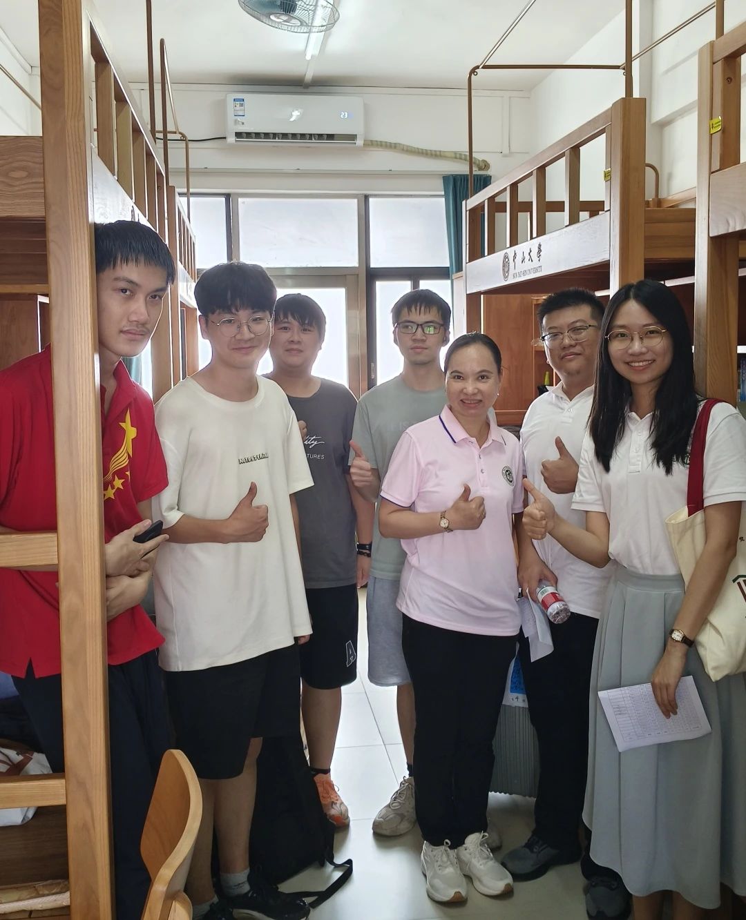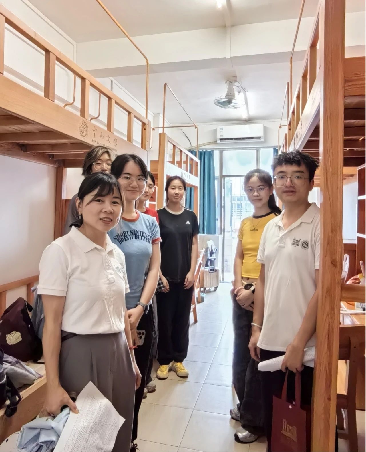 搬迁完成后,王燕芳老师、蓝丹红老师、李永强老师、林晓老师、郭蓝老师,以及杨秀芝、张芷蕙,逐间走访宿舍。老师们与同学们亲切交谈,询问搬迁感受,倾听大家的困惑与建议,对同学们在搬迁过程中遇到的问题,及时协调解决。一句句暖心的问候,一声声关切的叮嘱,让初入新校园的同学们,真切感受到了家一般的温暖。