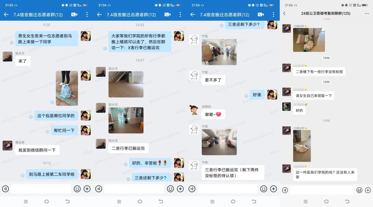 此次搬迁,南北两校园共 12 名学生志愿者积极参与。他们分工明确,各司其职:有的在宿舍楼下看管行李,寸步不离;有的协助搬运,即使汗水湿透衣衫也毫无怨言;还有的穿梭在宿舍楼间走访,确保信息传递及时准确。在全体师生的共同努力下,搬迁现场虽然忙碌却秩序井然。