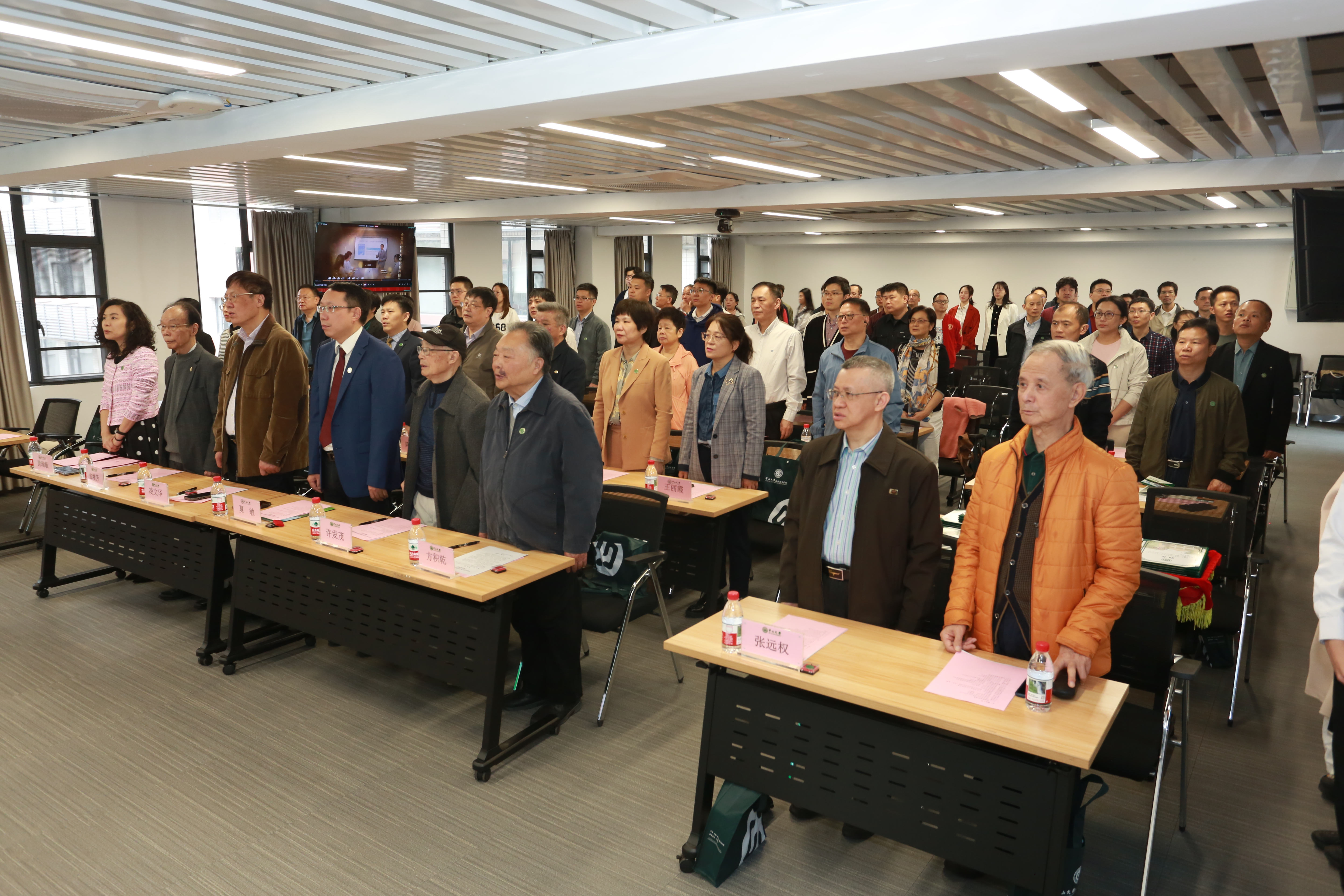 大会伊始,全体起立奏唱校歌,熟悉的旋律回荡在会议室中,瞬间唤醒了在场所有人的校园记忆与归属感,为本次换届大会拉开了温情而庄重的序幕。