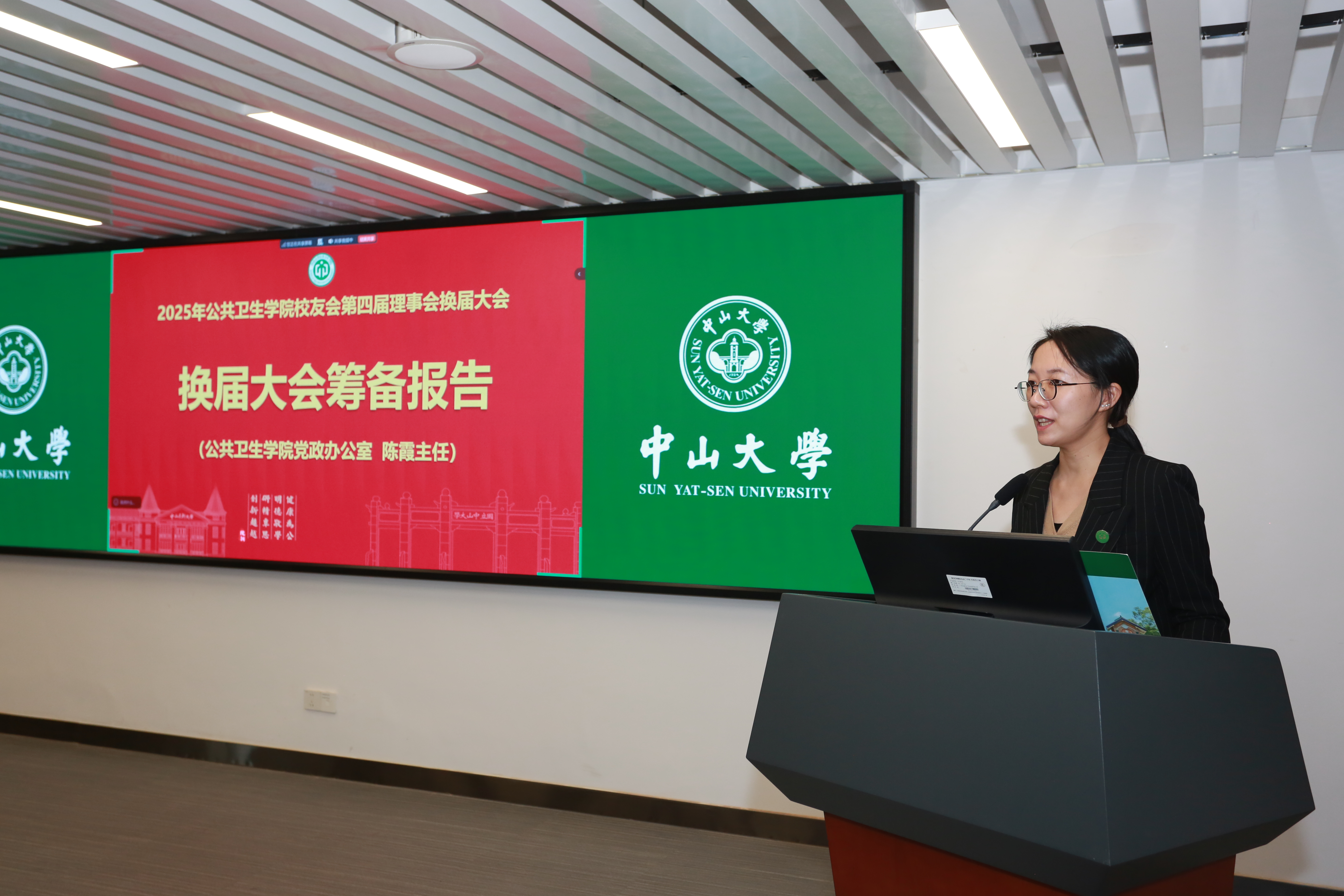 院长夏敏作学院发展报告。报告系统回顾了学院近年来在学科建设、人才培养、科研创新、社会服务等方面取得的丰硕成果,同时也提到2026年将迎来学院建院50周年院庆,诚挚邀请广大校友届时重返校园,共忆峥嵘岁月,共话未来发展。