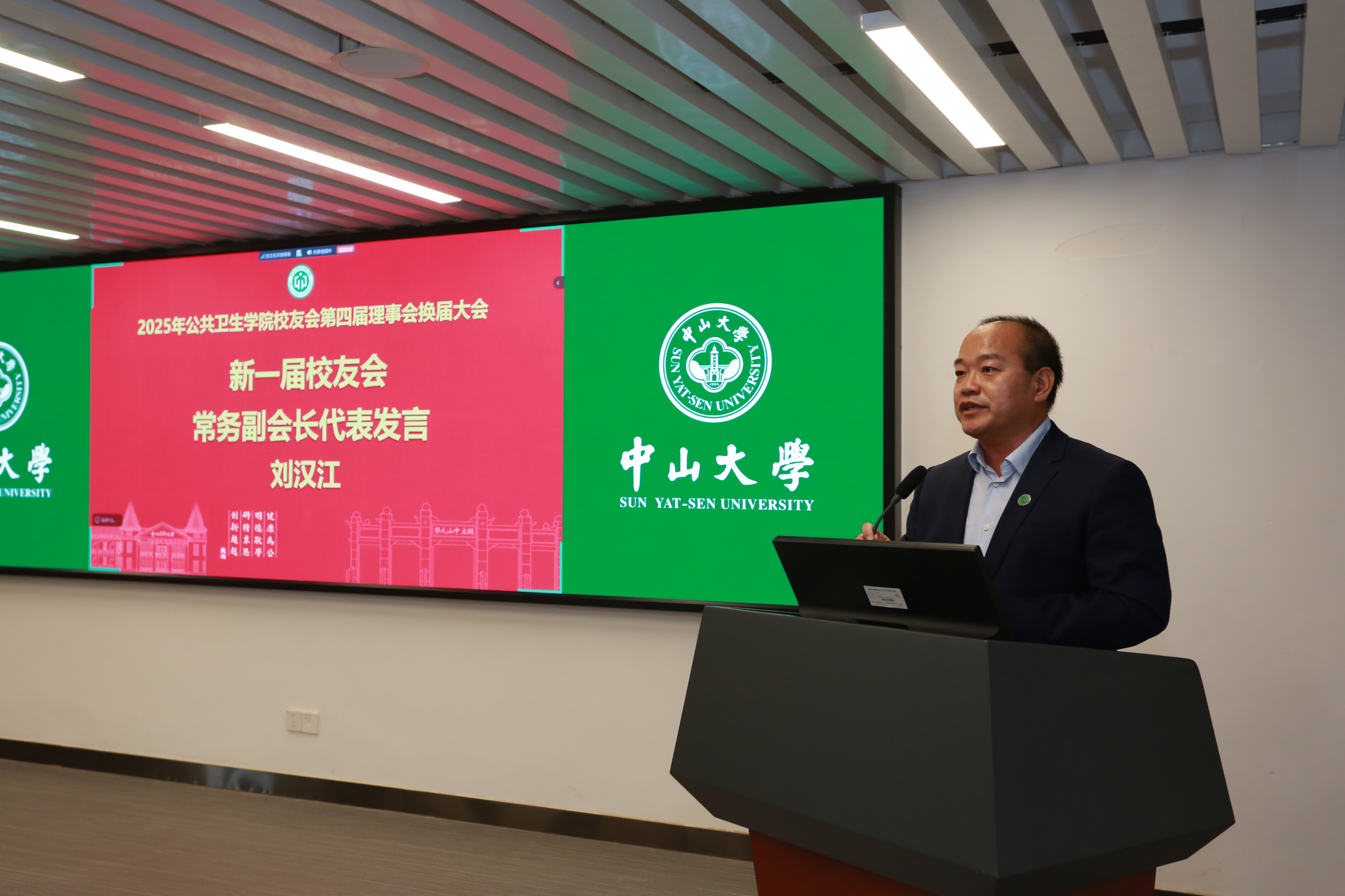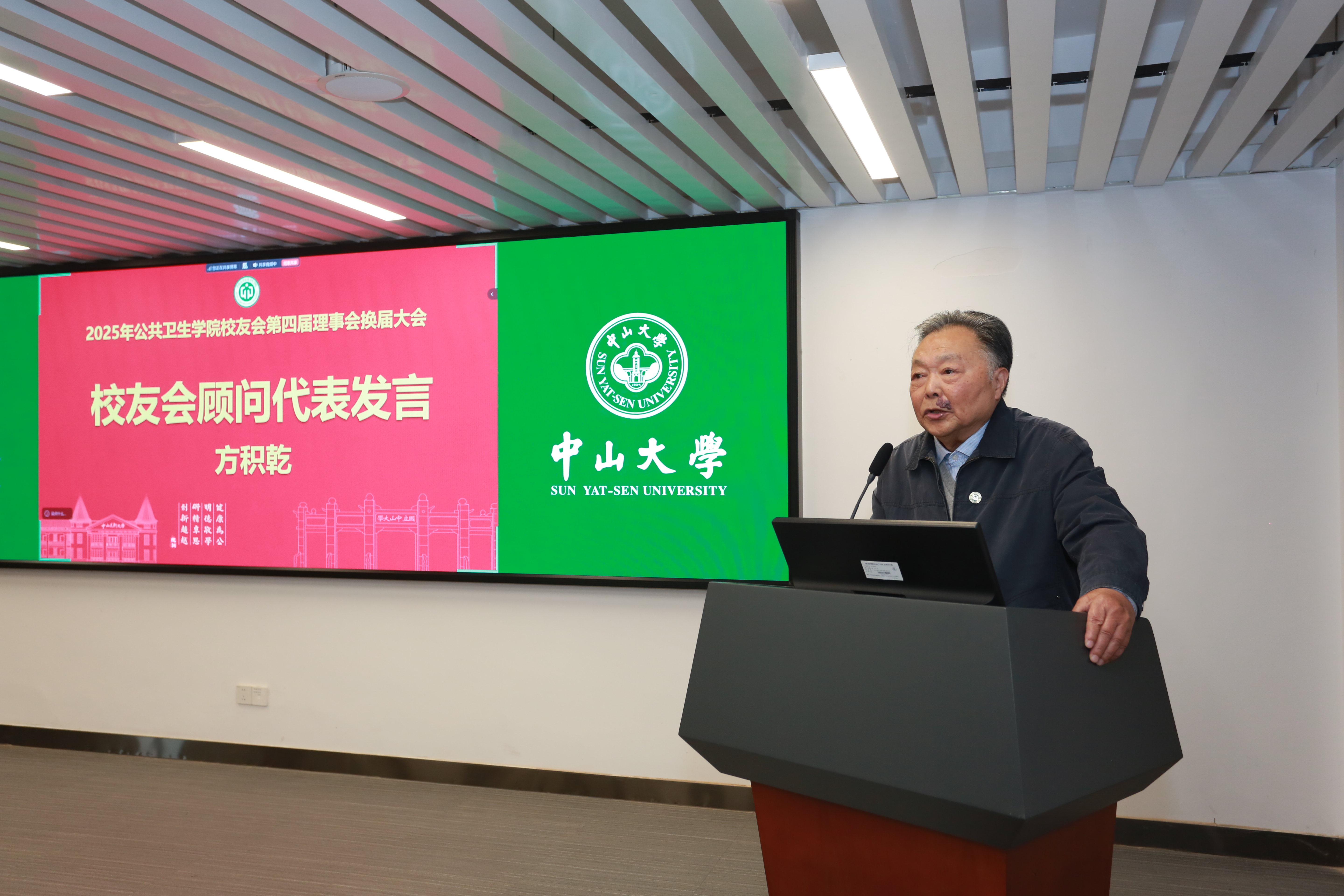 新一届校友会常务副会长刘汉江先生、校友会会长夏敏教授、校友会顾问代表方积乾教授先后发表讲话,他们表示新一届理事会将进一步加强校友间的联络与互助,搭建更多交流合作平台。尤其在学院建院 50 周年即将到来之际,将全力联动各方,精心筹备系列庆典活动,让全球公卫校友凝心聚力,共同为学院的高质量发展注入源源不断的动力。
