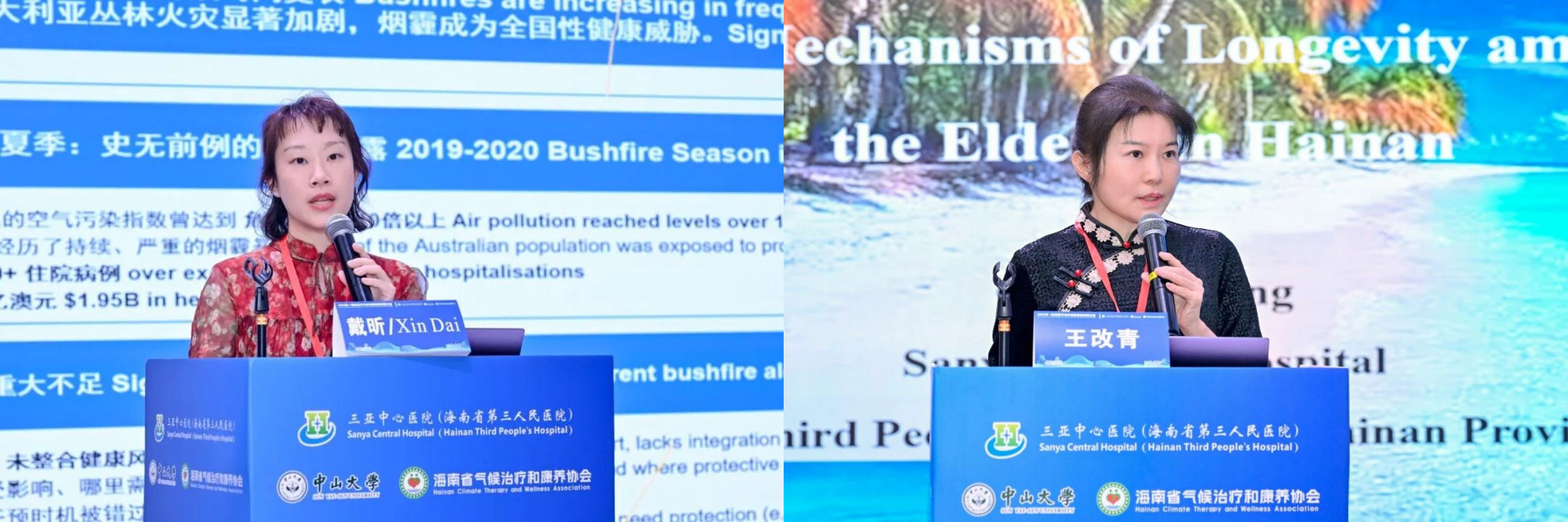 曾晓雯教授阐述了空气颗粒物暴露与老年人认知功能障碍的关联性及其健康影响机制,揭示了大气污染对老年认知衰退的深层影响,为认知障碍预防提供环境健康视角;澳大利亚墨尔本大学戴昕高级研究员分享了山火烟雾的健康影响研究成果,并基于“整夜”与“余烬”项目,解析大规模山火烟雾事件对心血管、呼吸系统和心理健康的短期与中期影响及风险缓解策略;三亚中心医院神经内科主任王改青教授从多维度解析海南长寿现象,强调大脑健康在长寿质量中的核心作用,为针对性健康老龄化干预提供科学依据。